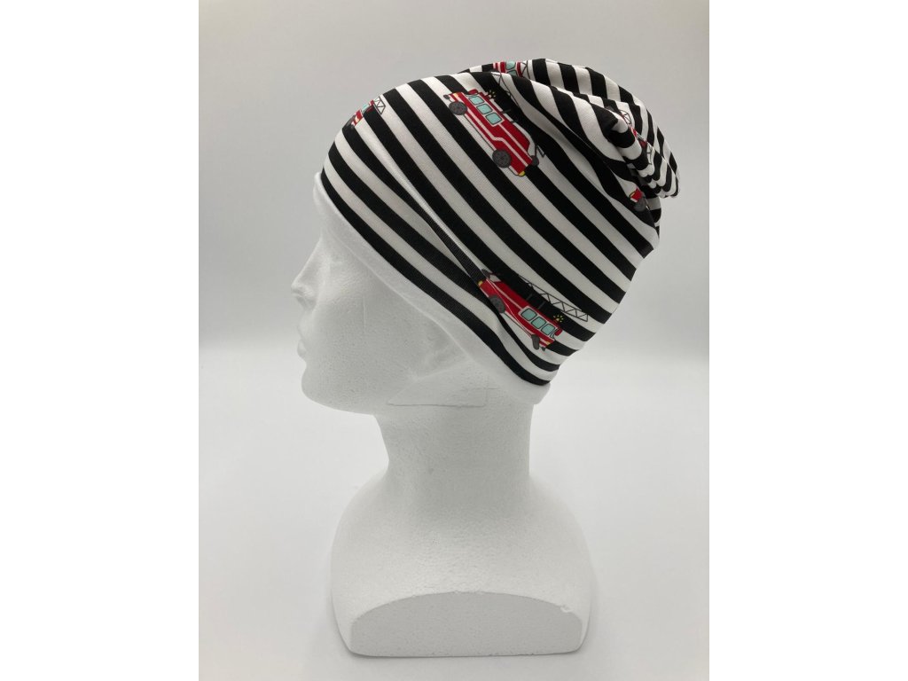 Dětská čepice s motivem hasiči, z velmi kvalitního a příjemného materiálu, dobře izoluje.