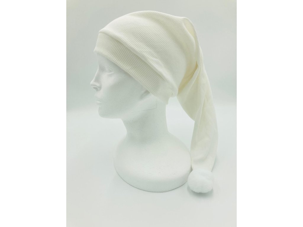 Prodloužená úpletová čepice s pružným lemem, která pomáhá udržet teplo během noci a chrání hlavu před chladem. Díky svému lehkému a prodyšnému designu je ideální pro ty, kteří mají citlivou pokožku hlavy nebo hledají stylový retro doplněk ke svému nočnímu oblečení.