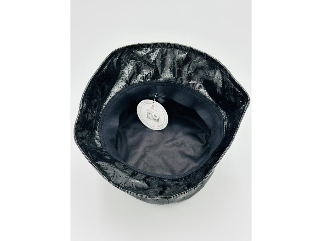 Dámský efektní klobouk z lesklého materiálu, vhodný i do deště, lehce omyvatelný.