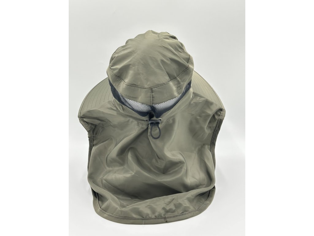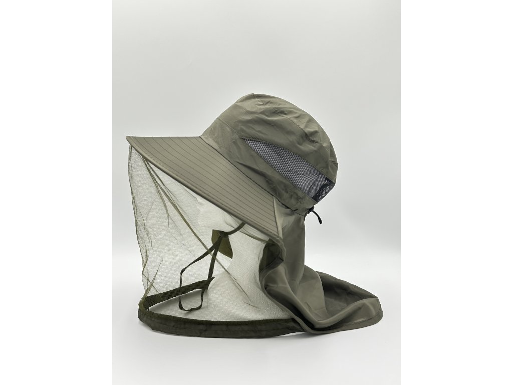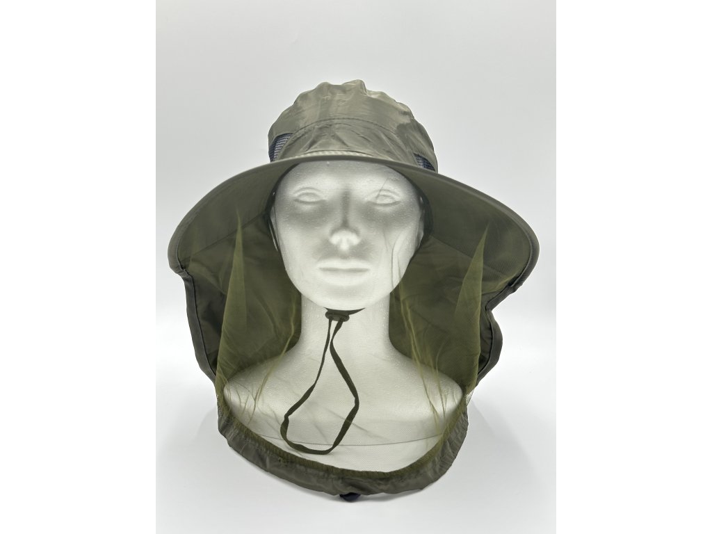 Klobouk se širokou krempou na ochranu proti slunci, vyrobený z polyesteru vyšší gramáže se síťkou proti hmyzu na stažení a v zadní části gumička s brzdičkou na úpravu obvodu hlavy, bez podšívky a se síťovými otvory pro lepší ventilaci.