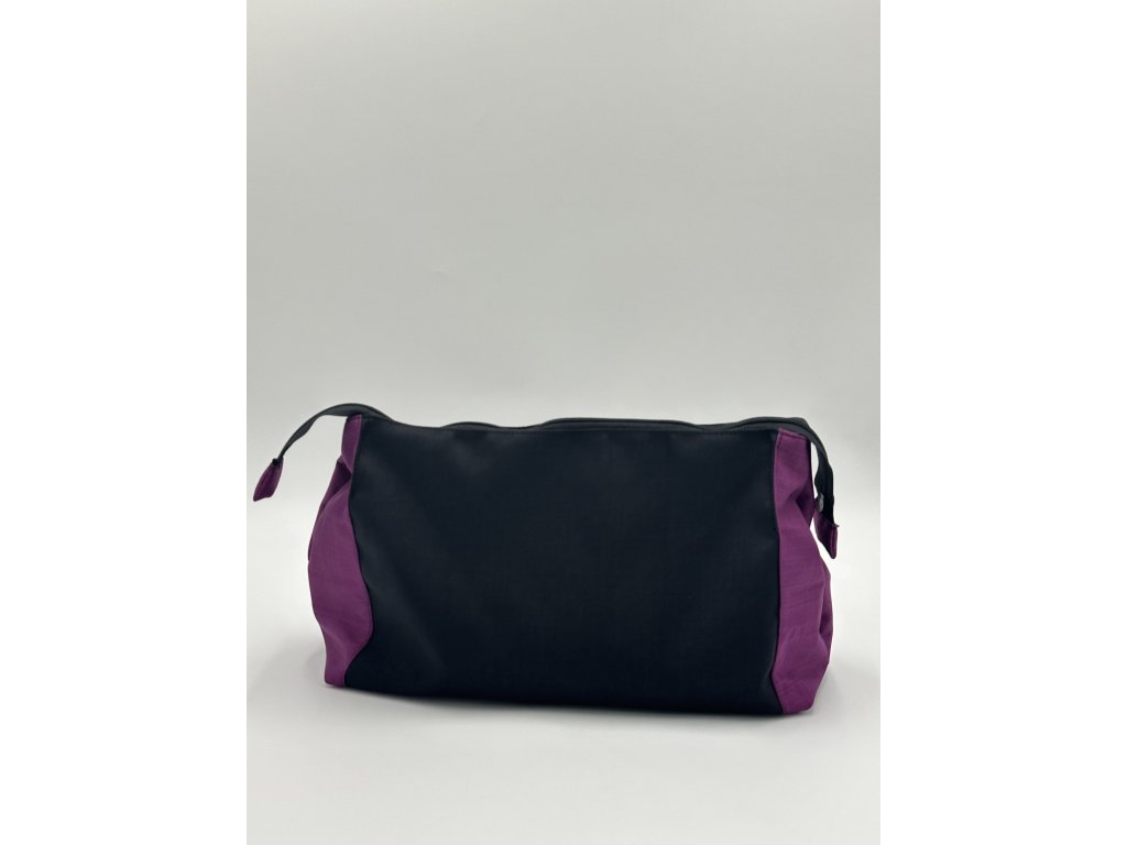 Kosmetická taštička z nepromokavého materiálu se zapínáním na zip a dělící přepážkou.