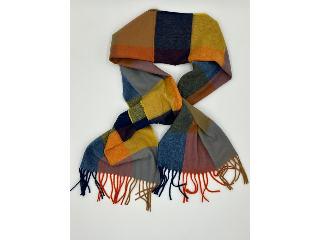Pouze šály Oranžová kostka a Tmavě modrá jsou ze 100% polyesteru.