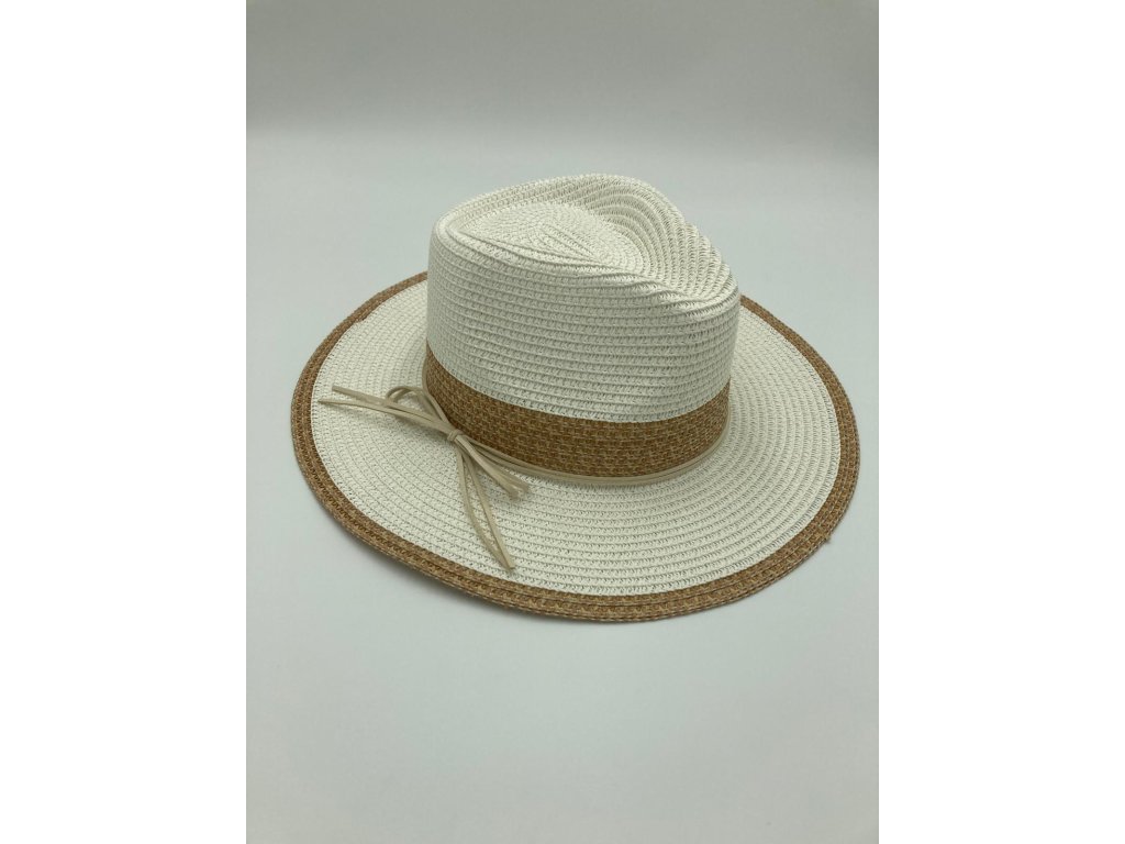 Pánský slamák z papírového vlákna zdobený šňůrkou imitace kůže